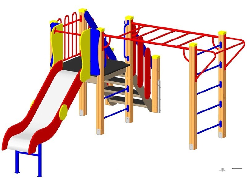 Материалы: Толстостенная труба, клееный брус, влагостойкая фанера.Все металлические элементы изготавливаются из круглых труб, с применением горячекатаного листа. Весь применяемый металлопрокат соответствует ГОСТ 10705-80, ГОСТ 1577-93. Сварные швы конструкций из металла гладкие (ГОСТ Р 52169-2012 п.4.3.10). Все металлические элементы окрашиваются порошковой краской ПК "АМIKA"П-ПЛ-1321 гладкая глянцевая, соответствующая требованиям санитарных норм и экологической безопасности. Для более качественного прокраса все металлические элементы проходят двойной цикл покраски.Все деревянные элементы изготавливаются из хвойной доски влажностью 7-10%, подвергаемой склейке по длине и ширине заготовки с применением клеев зарубежных производителей; изгибы, радиусы и скругленные кромки тщательно отшлифованы и обработаны краской для закрытия торцов JRM (ГОСТ Р 52169-2003 п.4.3.11). Все деревянные элементы проходят окраску в три слоя: первый слой — грунтование заготовки с последующим шлифованием поверхности, второй слой — покраска вододисперсионной краской с последующим шлифованием поверхности, третий слой — финишная покраска. Все деревянные элементы окрашиваются колерованным лаком BRAVA ACRIL 43 (ВД-АК-1043) полу глянцевым, соответствующий требованиям санитарных норм и экологической безопасности.Все деревянные элементы изготавливаются из хвойной доски влажностью 7-10%, подвергаемой склейке по длине и ширине заготовки с применением клеев зарубежных производителей; изгибы, радиусы и скругленные кромки тщательно отшлифованы и обработаны краской для закрытия торцов JRM (ГОСТ Р 52169-2003 п.4.3.11). Все деревянные элементы проходят окраску в три слоя: первый слой — грунтование заготовки с последующим шлифованием поверхности, второй слой — покраска вододисперсионной краской с последующим шлифованием поверхности, третий слой — финишная покраска. Все деревянные элементы окрашиваются колерованным лаком BRAVA ACRIL 43 (ВД-АК-1043) полу глянцевым, соответствующий требованиям санитарных норм и экологической безопасности.Крепеж оцинкован.Выступающие части резьбовых соединений закрыты пластиковыми заглушками (ГОСТ Р 52169-2012 п. 4.3.9).Крепление элементов оборудования исключает возможность их демонтажа без применения инструментов (ГОСТ Р 52169-2012 п. 4.3.13).Изделие сопровождается: а) техническим паспортом завода-изготовителя (ГОСТ Р 52301-2004 п. 5), в котором указано предназначение, номер изделия, правила безопасной эксплуатации и схема сборки.б) комплектом крепежа для сборки и монтажа.Сборочно-монтажные работы выполняются с соблюдением требований национальных стандартов по установке детского игрового оборудования и согласно схемам монтажа предприятия-изготовителя.