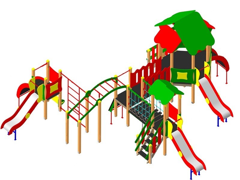 Материалы: Толстостенная труба, клееный брус, полипропиленовый канат, влагостойкая фанера.Все металлические элементы изготавливаются из круглых труб, с применением горячекатаного листа. Весь применяемый металлопрокат соответствует ГОСТ 10705-80, ГОСТ 1577-93. Сварные швы конструкций из металла гладкие (ГОСТ Р 52169-2012 п.4.3.10). Все металлические элементы окрашиваются порошковой краской ПК "АМIKA"П-ПЛ-1321 гладкая глянцевая, соответствующая требованиям санитарных норм и экологической безопасности. Для более качественного прокраса все металлические элементы проходят двойной цикл покраски.Все деревянные элементы изготавливаются из хвойной доски влажностью 7-10%, подвергаемой склейке по длине и ширине заготовки с применением клеев зарубежных производителей; изгибы, радиусы и скругленные кромки тщательно отшлифованы и обработаны краской для закрытия торцов JRM (ГОСТ Р 52169-2003 п.4.3.11). Все деревянные элементы проходят окраску в три слоя: первый слой — грунтование заготовки с последующим шлифованием поверхности, второй слой — покраска вододисперсионной краской с последующим шлифованием поверхности, третий слой — финишная покраска. Все деревянные элементы окрашиваются колерованным лаком BRAVA ACRIL 43 (ВД-АК-1043) полу глянцевым, соответствующий требованиям санитарных норм и экологической безопасности.Все деревянные элементы изготавливаются из хвойной доски влажностью 7-10%, подвергаемой склейке по длине и ширине заготовки с применением клеев зарубежных производителей; изгибы, радиусы и скругленные кромки тщательно отшлифованы и обработаны краской для закрытия торцов JRM (ГОСТ Р 52169-2003 п.4.3.11). Все деревянные элементы проходят окраску в три слоя: первый слой — грунтование заготовки с последующим шлифованием поверхности, второй слой — покраска вододисперсионной краской с последующим шлифованием поверхности, третий слой — финишная покраска. Все деревянные элементы окрашиваются колерованным лаком BRAVA ACRIL 43 (ВД-АК-1043) полу глянцевым, соответствующий требованиям санитарных норм и экологической безопасности.Крепеж оцинкован.Выступающие части резьбовых соединений закрыты пластиковыми заглушками (ГОСТ Р 52169-2012 п. 4.3.9).Крепление элементов оборудования исключает возможность их демонтажа без применения инструментов (ГОСТ Р 52169-2012 п. 4.3.13).Изделие сопровождается: а) техническим паспортом завода-изготовителя (ГОСТ Р 52301-2004 п. 5), в котором указано предназначение, номер изделия, правила безопасной эксплуатации и схема сборки.б) комплектом крепежа для сборки и монтажа.Сборочно-монтажные работы выполняются с соблюдением требований национальных стандартов по установке детского игрового оборудования и согласно схемам монтажа предприятия-изготовителя.