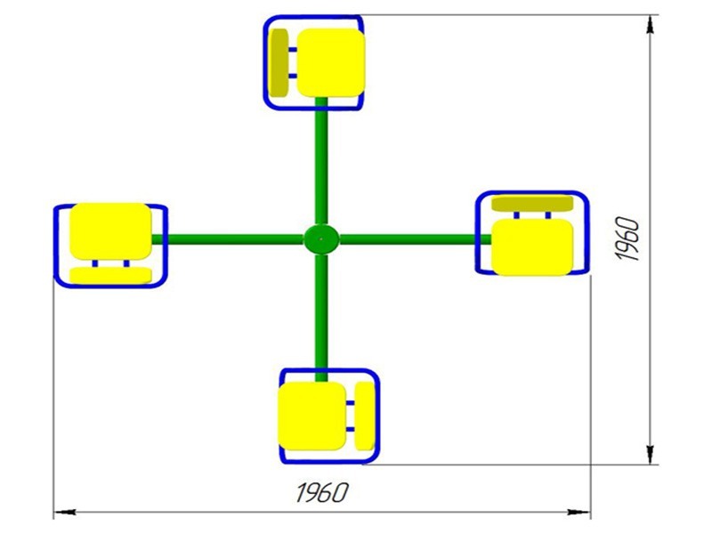 Карусель устанавливается и бетонируется в грунт при помощи основания для