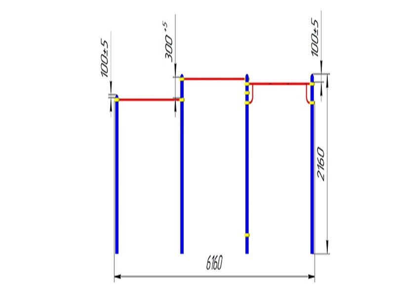 Материалы: Толстостенная труба.Весь применяемый металлопрокат соответствует ГОСТ 10705-80, ГОСТ 1577-93. Сварные швы конструкций из металла обработаны и отшлифованы (ГОСТ Р 52169-2012 п.4.3.10). Все металлические элементы окрашиваются глянцевой порошковой краской, соответствующей требованиям санитарных норм и экологической безопасности. Для более качественного прокраса все металлические элементы проходят двойной цикл покраски.Крепеж оцинкован.Выступающие части резьбовых соединений закрыты пластиковыми заглушками (ГОСТ Р 52169-2012 п. 4.3.9).Крепление элементов оборудования исключает возможность их демонтажа без применения инструментов (ГОСТ Р 52169-2012 п. 4.3.13).Изделие сопровождается: а) техническим паспортом завода-изготовителя (ГОСТ Р 52301-2004 п. 5), в котором указано предназначение, номер изделия, правила безопасной эксплуатации и схема сборки.б) комплектом крепежа для сборки и монтажа.Сборочно-монтажные работы выполняются с соблюдением требований национальных стандартов по установке детского игрового оборудования и согласно схемам монтажа предприятия-изготовителя.